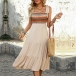 This is a whimsical and feminine dress that exudes bohemian charm and effortless elegance. The floral print adds a touch of romance and nostalgia to the dress, creating a vibrant and eye-catching look that is perfect for warm-weather days. The self-tie shoulder straps offer a customizable fit and a playful detail that adds a bohemian flair to the dress. Made from lightweight and breathable fabric, this dress is comfortable and easy to wear, making it a go-to choice for summer outings, beach days, and outdoor events.