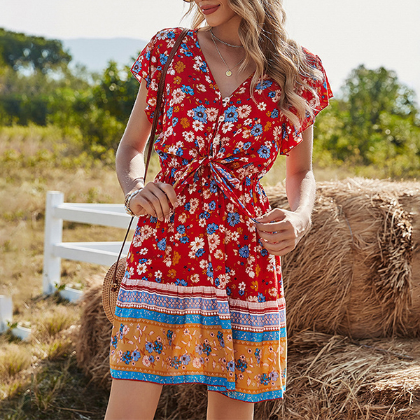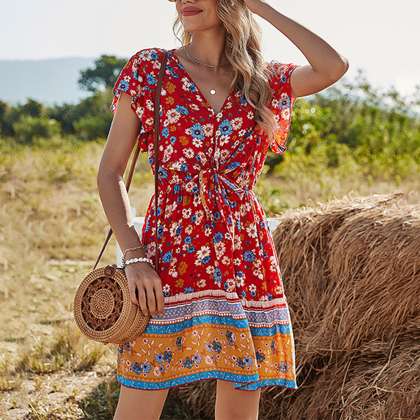 Bohemia Style Floral Printed Short Sleeve Dress