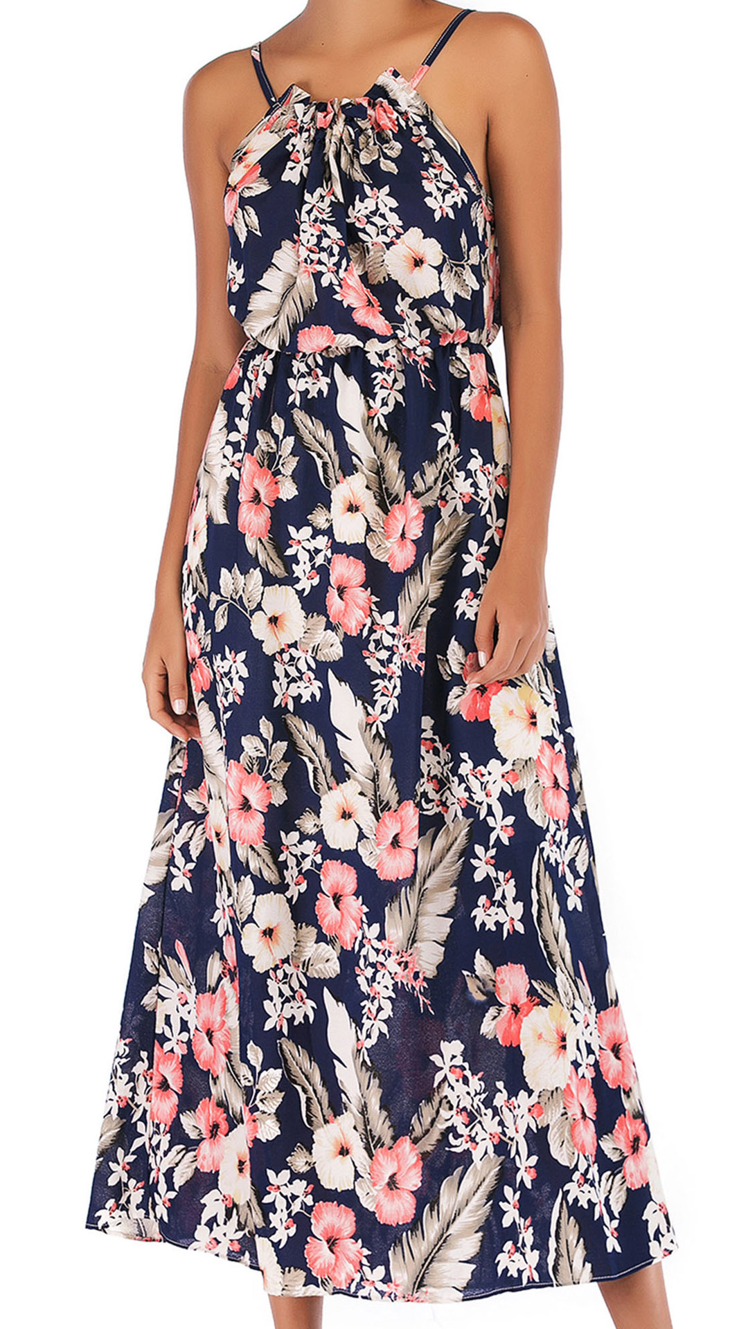 For a chic and fashion boho look, maybe you could try this calf-length dress. It features a flowy silhouette with spaghetti straps, vivid colors and intricate print are sure to make you stand out from the crowd.
