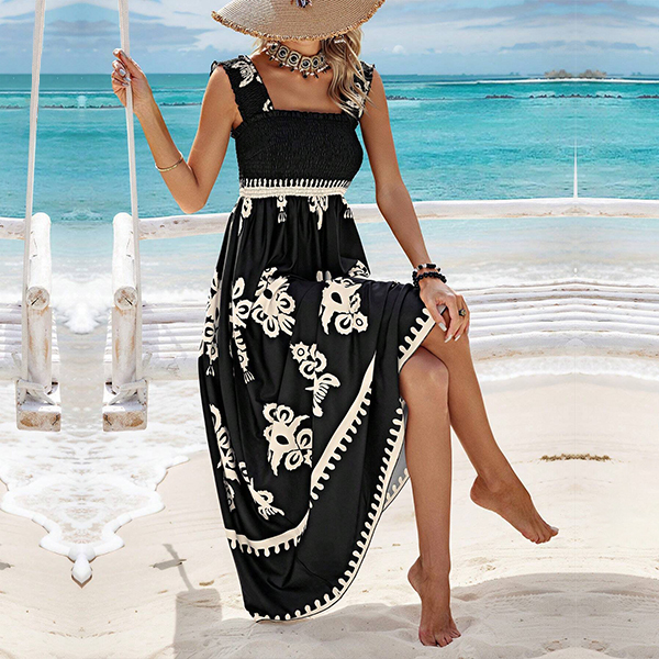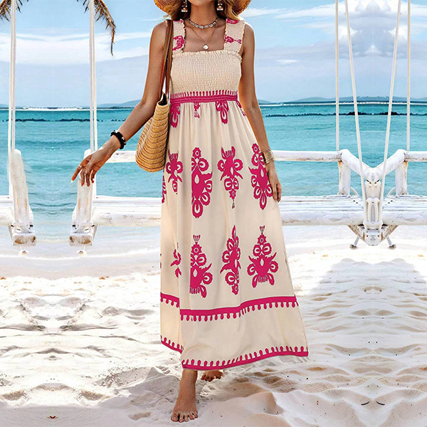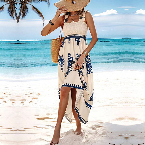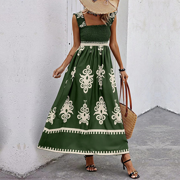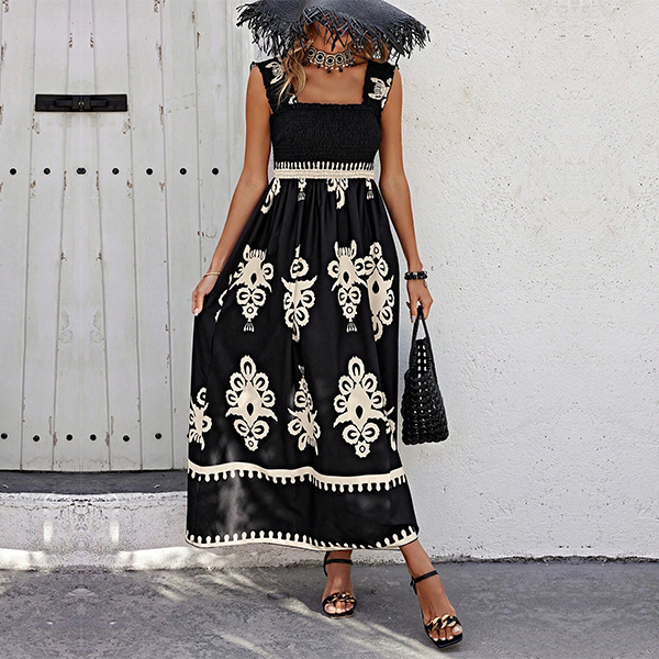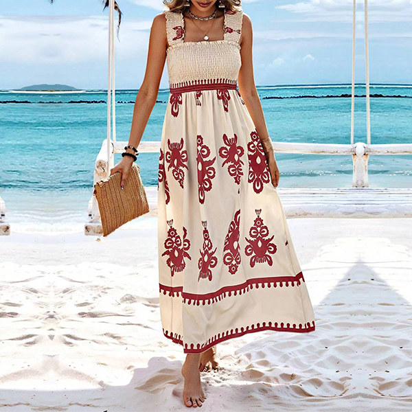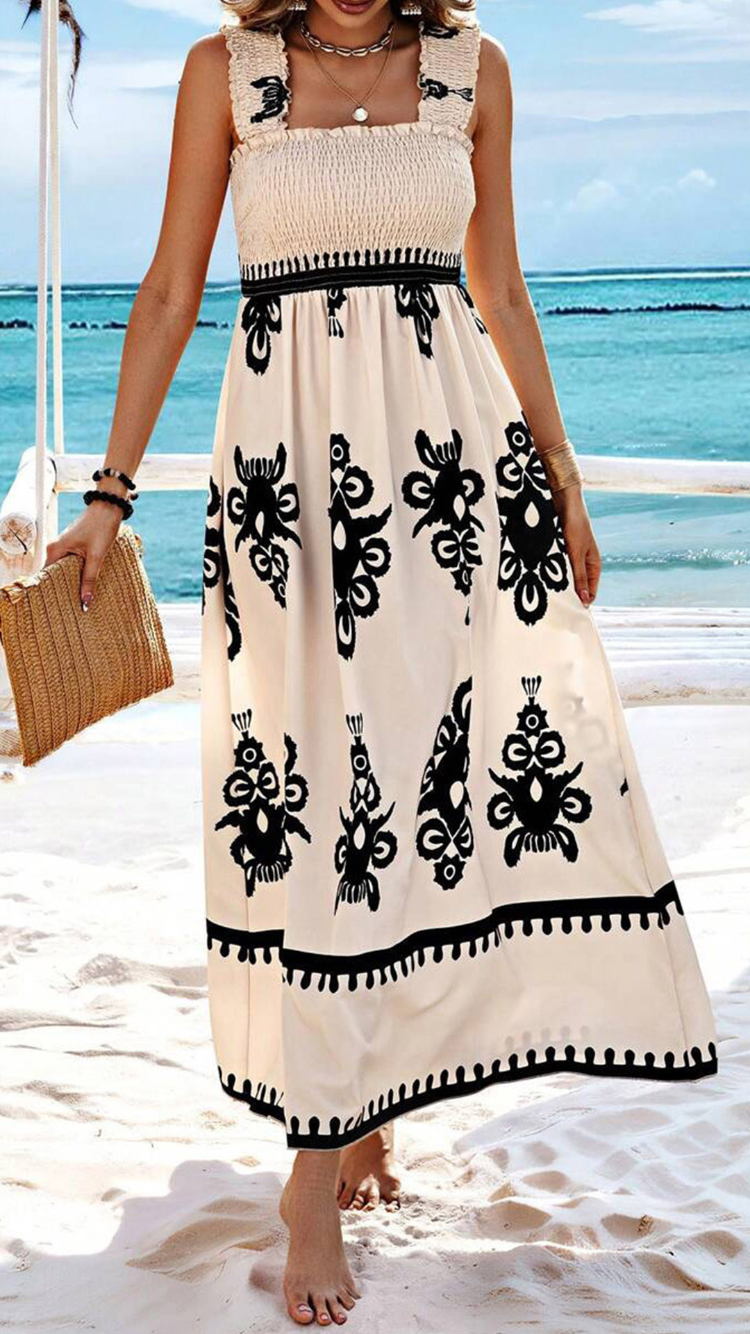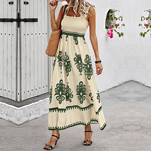 This midi dress features a floral print, smocked bodice, and a midi-length for a trendy and effortlessly chic look.