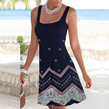Bohemia Style Floral Printed Square Neck Mini Dress