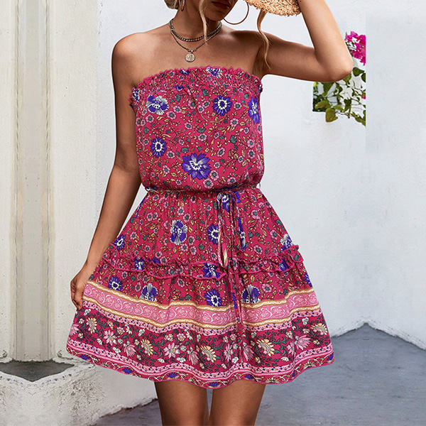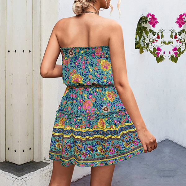 This mini dress features overall floral print, strapless, elastic waist. It is perfect for a variety of occasions.