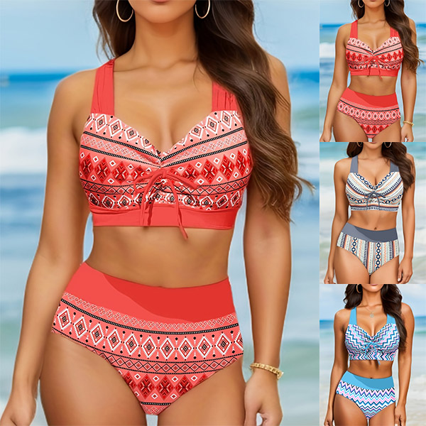 Bohemia Style Floral Printed Two-piece Bikini Set