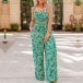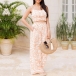 Bohemia Style Floral Printed Two-piece Set Consist of Cami Top and Wide-leg Pants