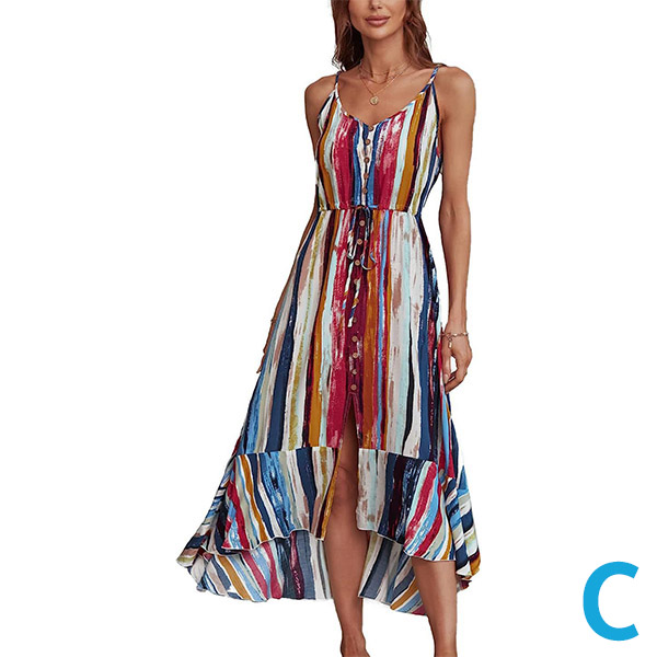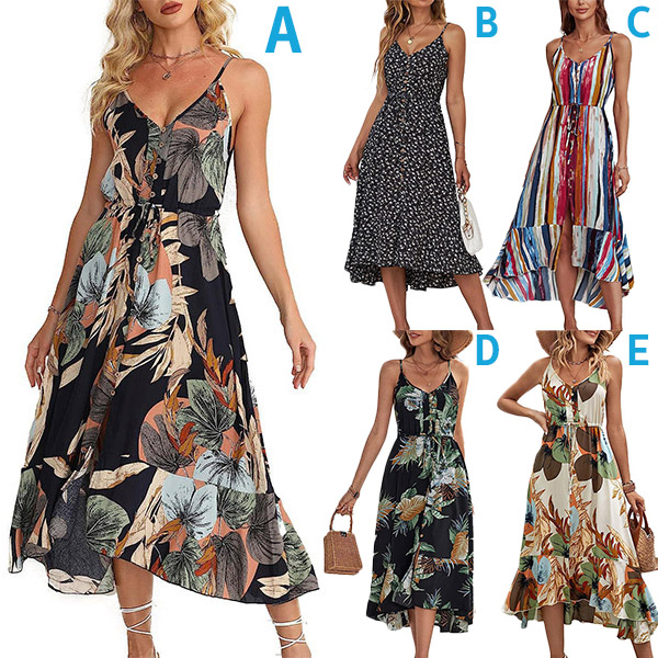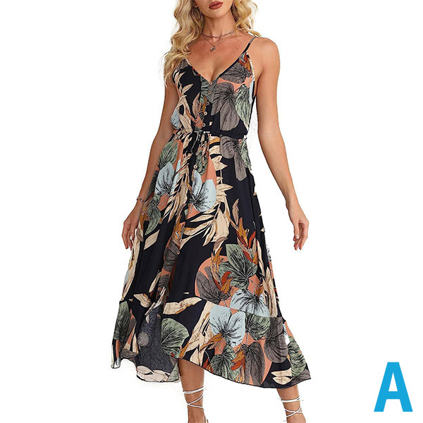 Bohemia Style Floral Printed V-neck Buttoned Slip Dress