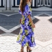 This dress features a bohemian-inspired floral print, a flattering V-neckline, delicate cap sleeves, a high-rise waist, and a slit detail, combining a sense of wanderlust, femininity, and casual elegance in one captivating piece. Hope you like it.