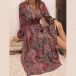 Bohemia Style Floral Printed V-neck Long Sleeve Maxi Dress
