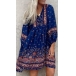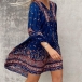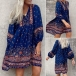 Bohemia Style Floral Printed V-neck Loose Mini Dress