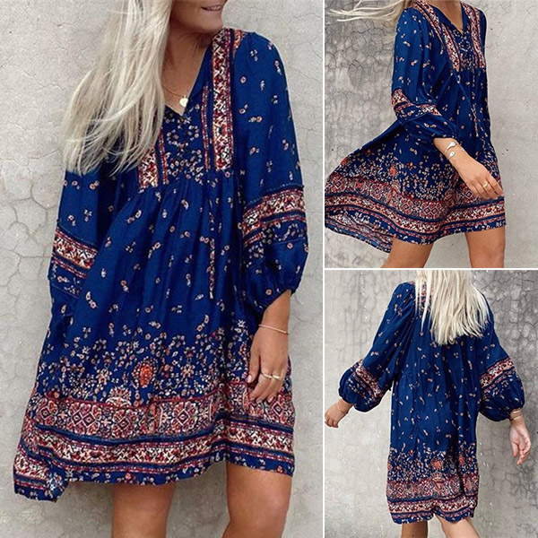 Looking for a summer dress that's both comfortable and stylish? Look no further than this Bohemia Style Mini Dress! Made from a lightweight and airy fabric, this dress is perfect for hot summer days. The loose fit and V-neck silhouette makes it both flattering and comfortable to wear, while the floral print adds a touch of femininity. Pair it with some sandals and a sunhat for the perfect summer look!