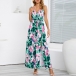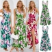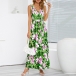 Bohemia Style Floral Printed V-neck Self-tie Slit Dress