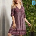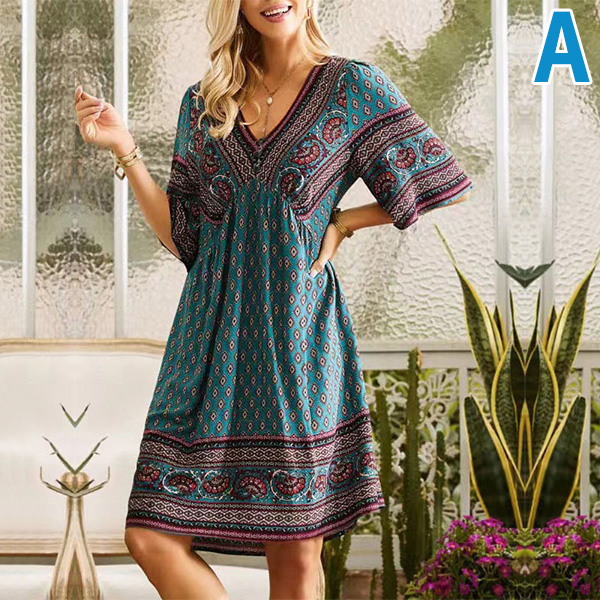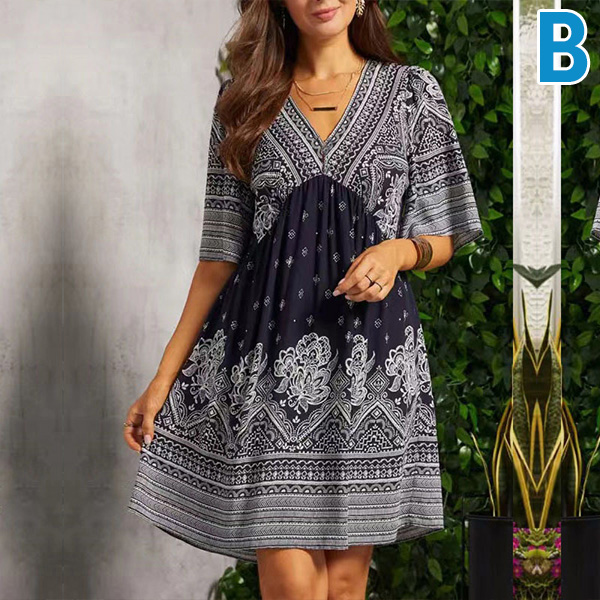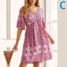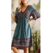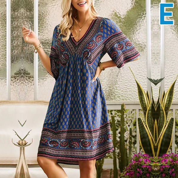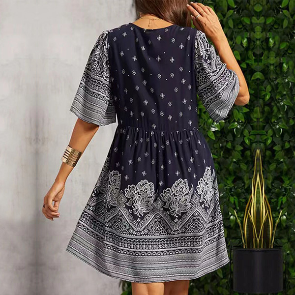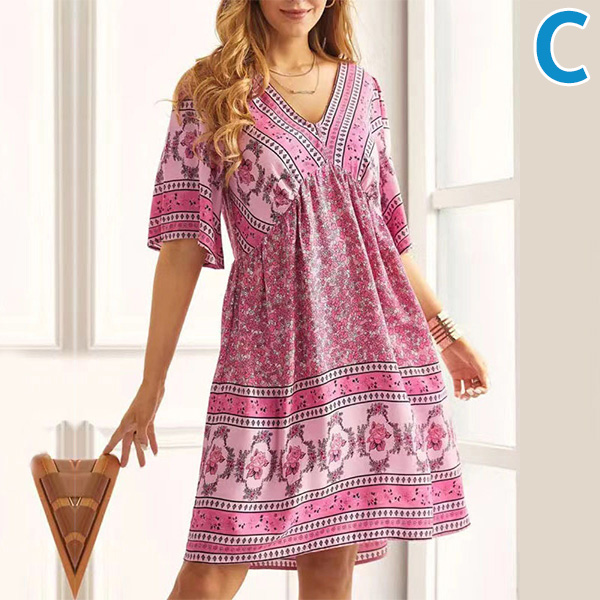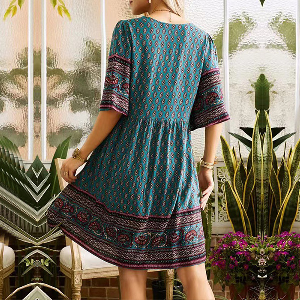 Bohemia Style Floral Printed V-neck Short Sleeve Dress