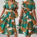 Bohemia Style Floral Printed V-neck Short Sleeve Dress