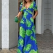 Bohemia Style Floral Printed V-neck Short Sleeve High Waist Wide-leg Jumpsuit