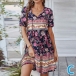 Bohemia Style Floral Printed V-neck Short Sleeve Dress