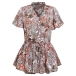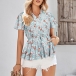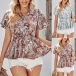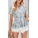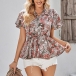 Bohemia Style Floral Printed V-neck Short Sleeve Ruffled Shirt