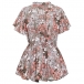 This shirt features a beautiful floral print design, with a V-necklinel waist drawstring and ruffled hemline that adds a touch of elegance and sophistication to the overall style.