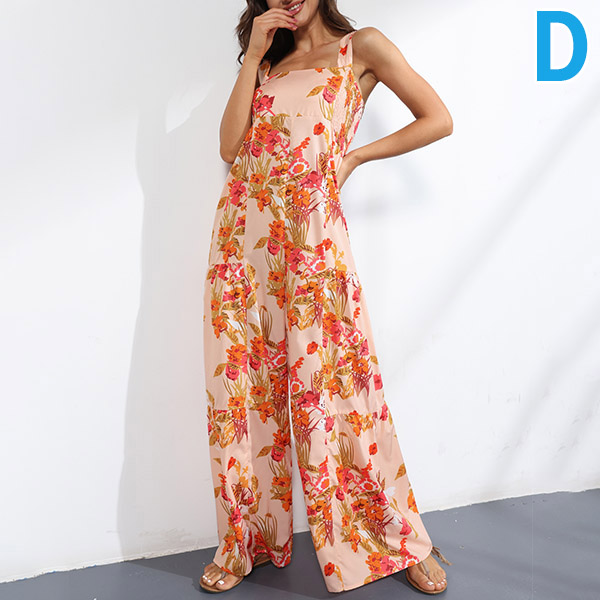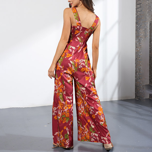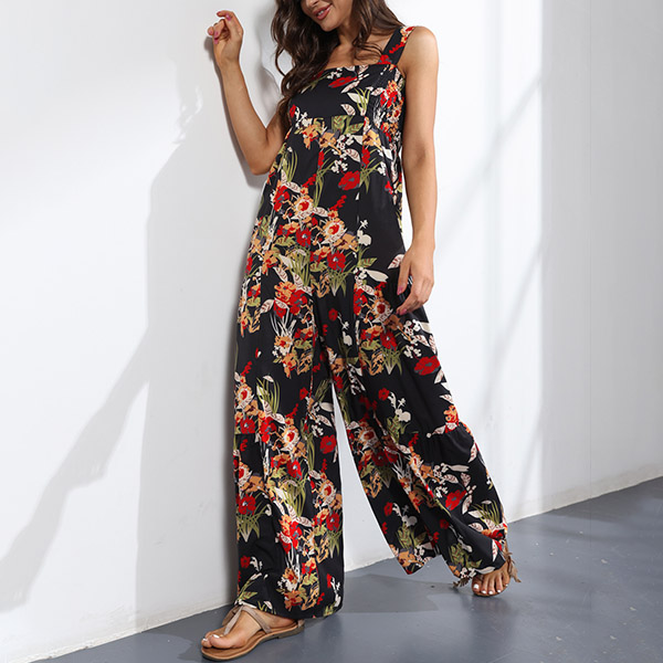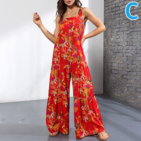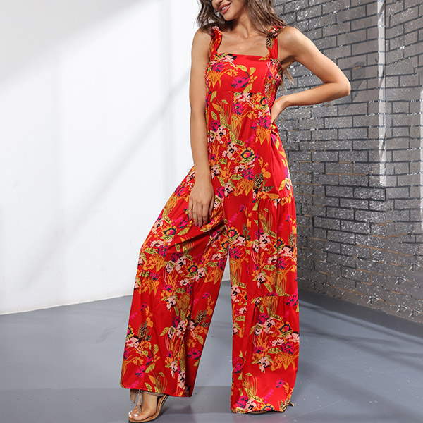 Bohemia Style Floral Printed Wide-leg Cami Jumpsuit