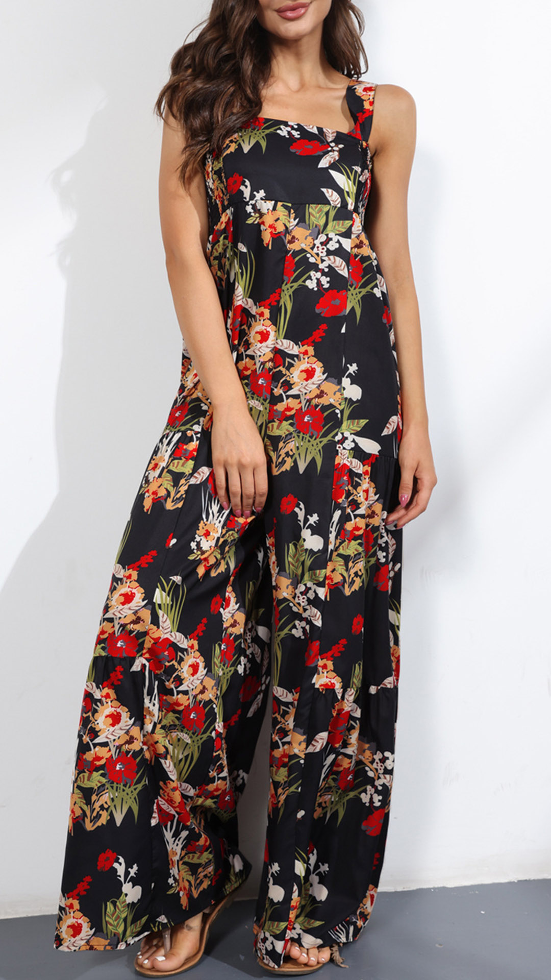 For a fashionable and chic summer look, maybe you could try this jumpsuit! The floral print and wide leg design is very fashionable and popular. It is made of high-quality material, comfortable to wear.