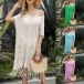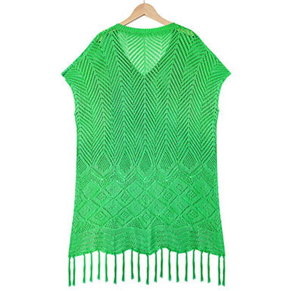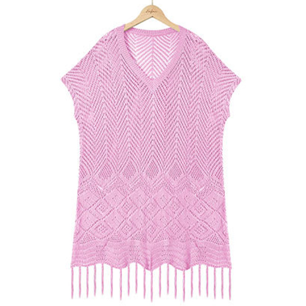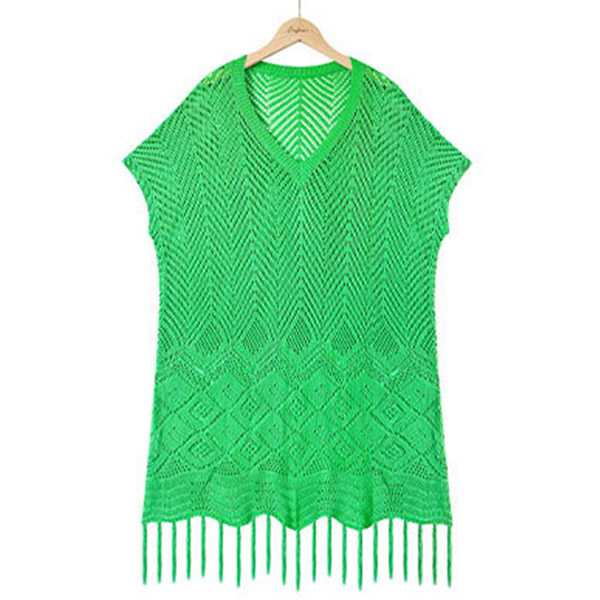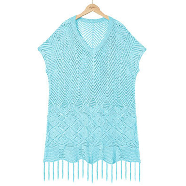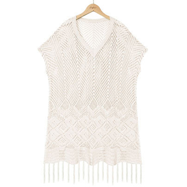 Bohemia Style Hollow-out Tassel Short Sleeve Loose Beach Dress