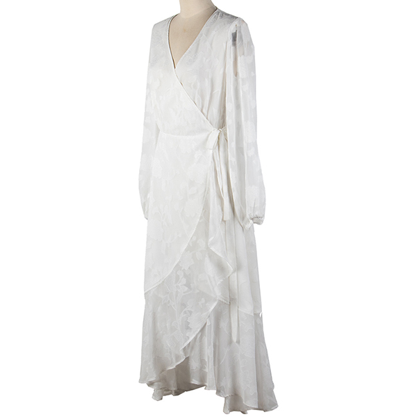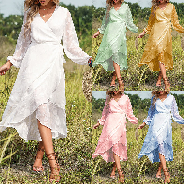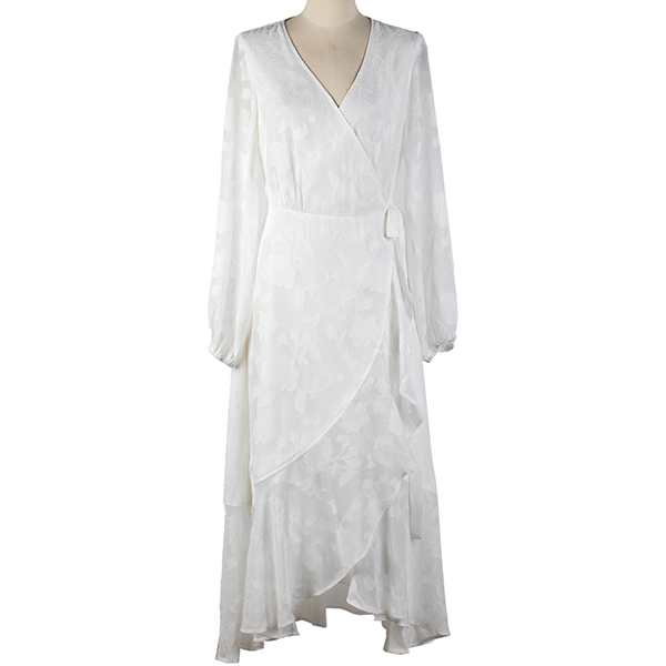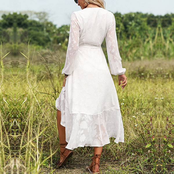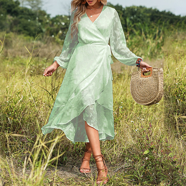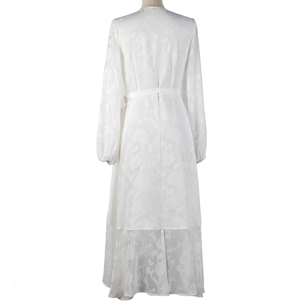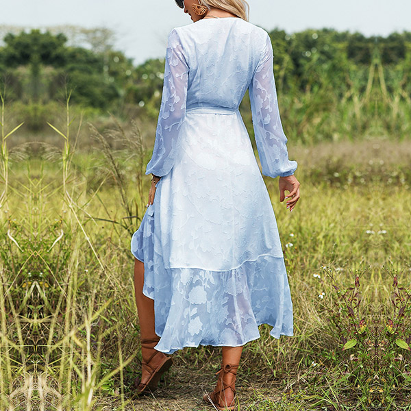 Bohemia Style Jacquard V-neck Long Sleeve Self-tie Wrap Dress