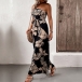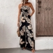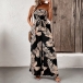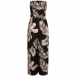 Bohemia Style Leave Printed Strapless Self-tie Wide-leg Jumpsuit