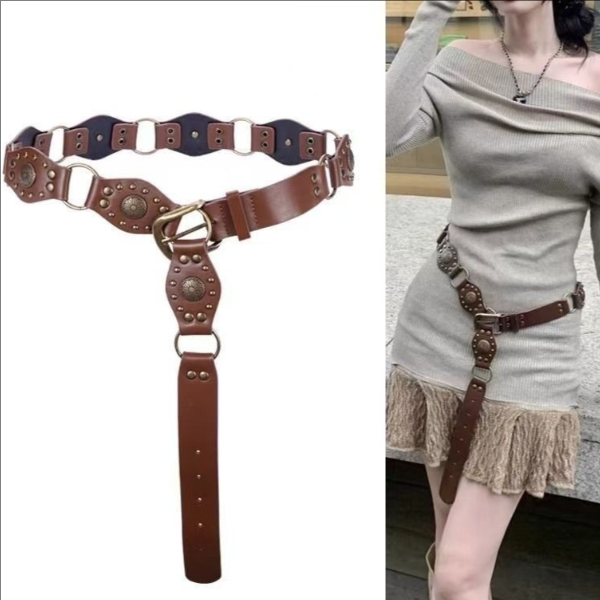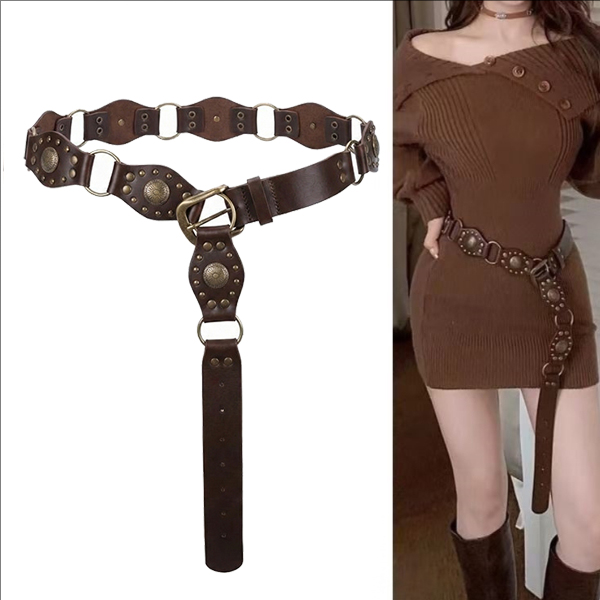 Bohemia Style Rivet O-ring Artificial Leather PU Belt
