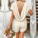This is a free-spirited and stylish romper that radiates effortless charm and summer vibes. The draped and backless with strappy design adds a whimsical and romantic touch, showcasing your back in a tasteful and bohemian way. Perfect for a day of exploring, a summer festival, or a casual outdoor gathering, this romper is designed to keep you looking stylish and feeling carefree.