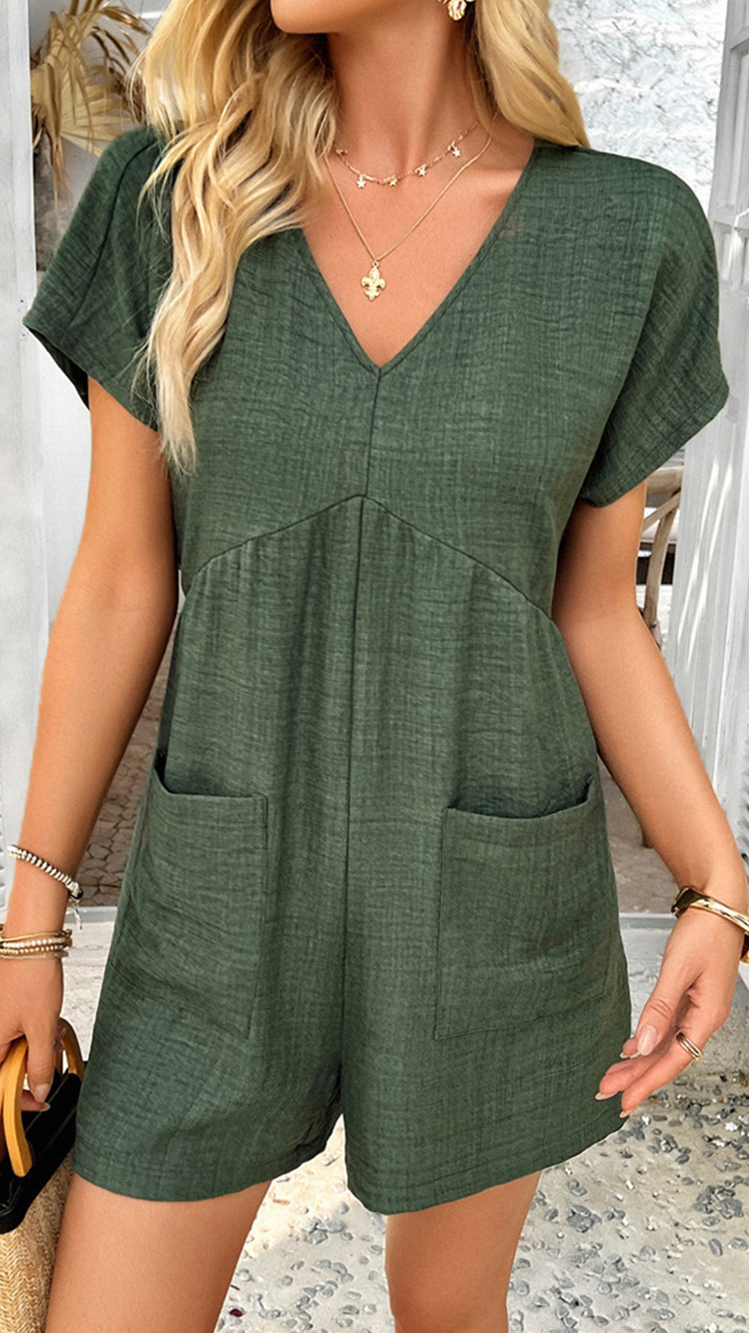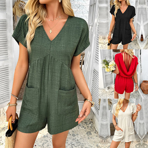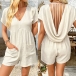 Bohemia Style V-neck Short Sleeve Draped Backless Strappy Romper