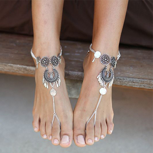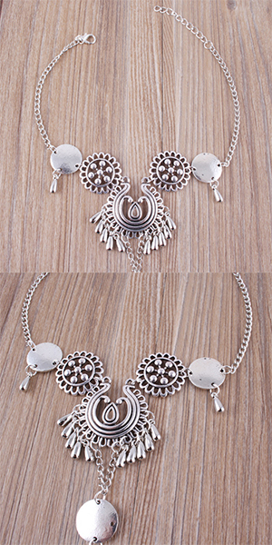 This anklet chain is styled with hollow out carving patterns and water-drop shaped design,