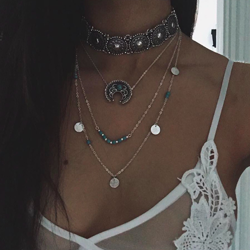 The necklace is outfitted with turquoise carving design, which give people a sense of retro