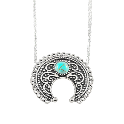 Bohemian Retro Turquoise Carving Pendant Necklace