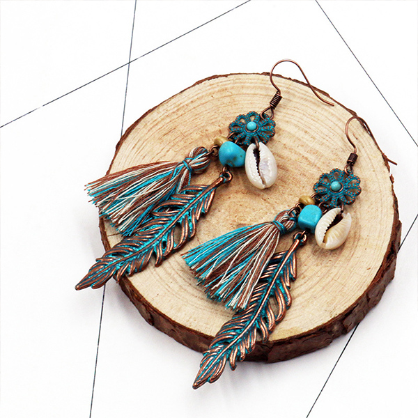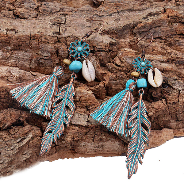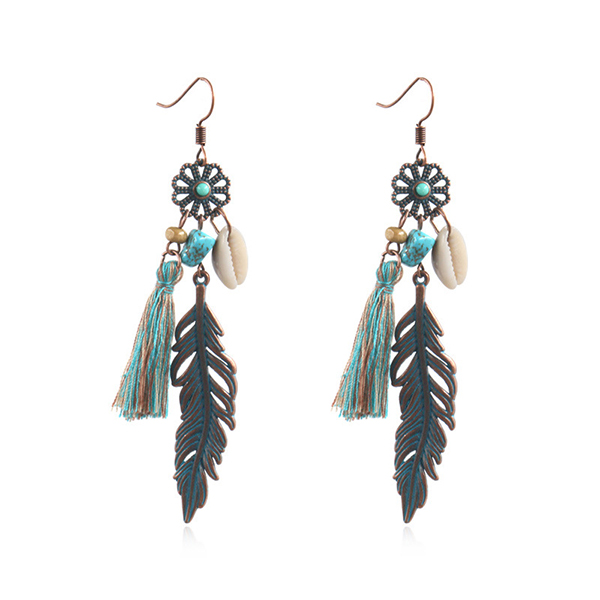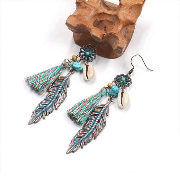 This pendant earring is styled with retro turquoise leaf shaped design, it is full of distinct characteristic and exquisite texture, which emit natural breathe and artistic atmosphere.You'd better pair it with your bohemian dress; it will make you elegant and charming.The earring is a perfect addition for your delicate look.