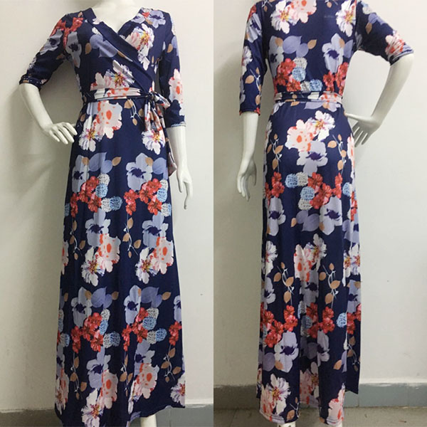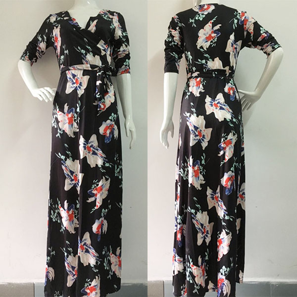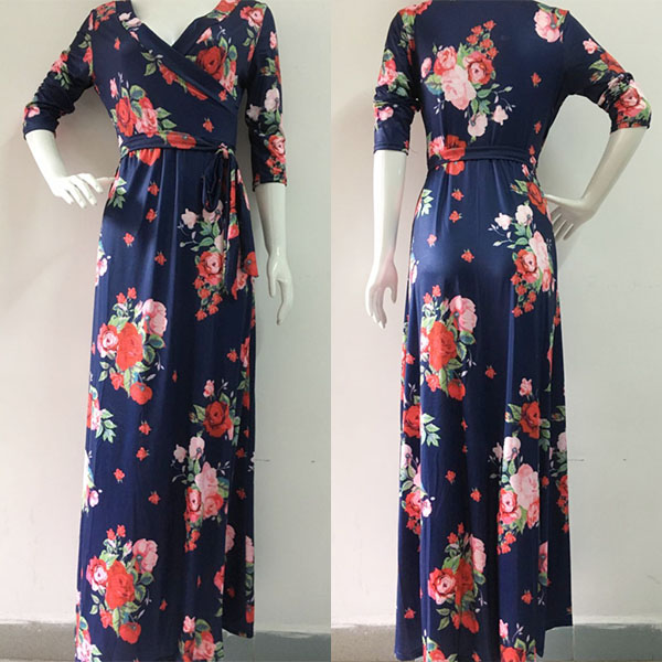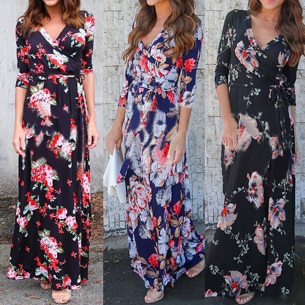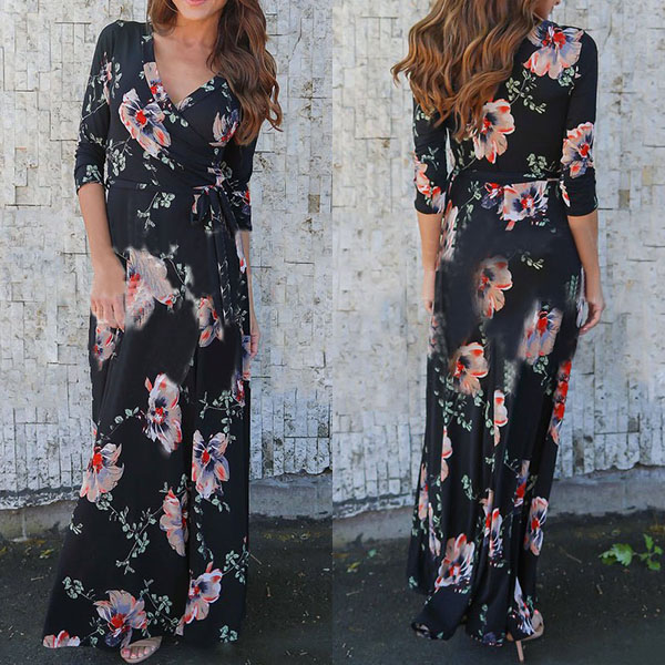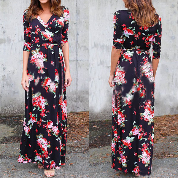 you an easy transition. Boasts sweet,romantic and vibrant floral print,accompanied with 3/4 sleeve,v-neck and a maxi length,