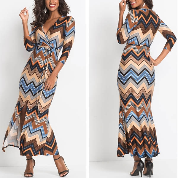 You can easily catch more eyes when you are in this dress. The contrast color wavy-striped element