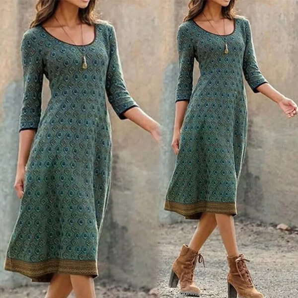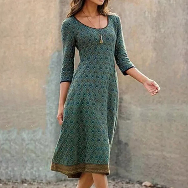 Make your wardrobe more complete by adding this bohemian style dress. Its chic printed details will help you catch more eyes. Finished with 3/4 sleeve,round neck and soft,breathable fabric,this dress is sure to know how to give you a cozy yet stylish daily style. So why not take interest in it?