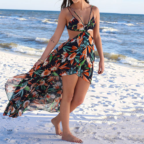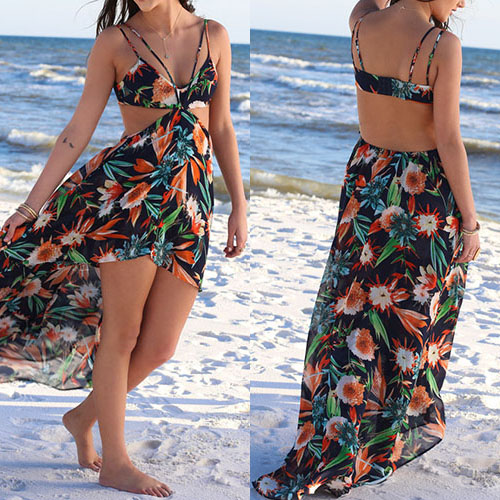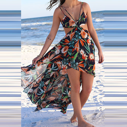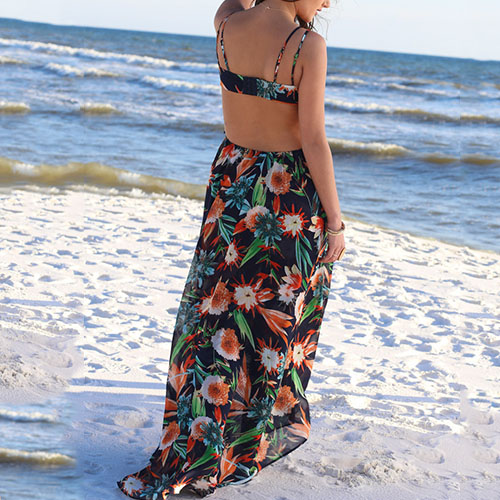 on this dress. Boasting a vibrant floral print,with backless and a high-low hem,sexy and charming.