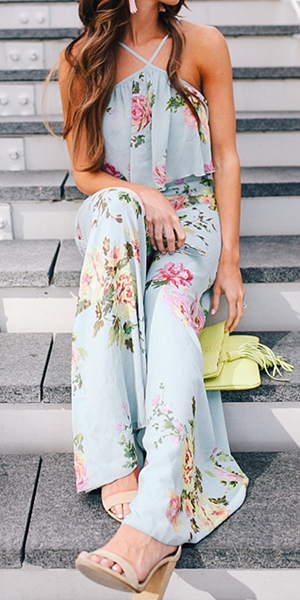 on this jumpsuit! Boasts sweet and vibrant floral print,accompanied with backless,off-shoulder and high waist design,