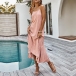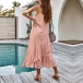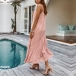 For these summer days,you need such a cozy yet sexy bohemian-themed dress. Sling and backless design make this piece look so sultry and alluring. Designed with dots printed details and ruffle hem,this dress knows how to express your playful yet feminine side. Adding a sweet straw hat on these sunny days would make you look more perfect.