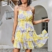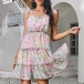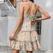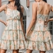 Bohemian Style Backless Ruffle Hem Sling Printed Dress