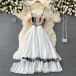 For your beach days or tropical getaways,you can trust in this bohemian style dress to make you look beautiful and charming. Sling style,with backless and v-neck design,which make this piece look sexy and alluring,while the lace details and printed design can easily enhance its entire charm. On these sunny days,adding a sweet straw hat would be more perfect!