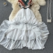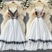 Bohemian Style Backless V-neck High Waist Printed Spliced Sling Dress