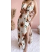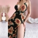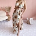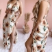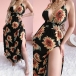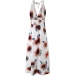 Bohemian Style Backless V-neck High Waist Slit Hem Sunflower Printed Dress