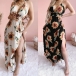 As for a sexy and charming beach look,you can just make your eyes focused on this bohemian style dress. The sunflower printed pattern design makes it look so eye-catching,while the backless,v-neck,slit hem design will make you look more alluring. On these sunny days,adding a sweet straw hat would be more perfect!