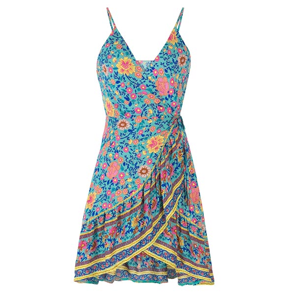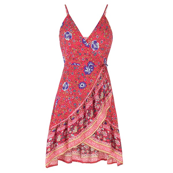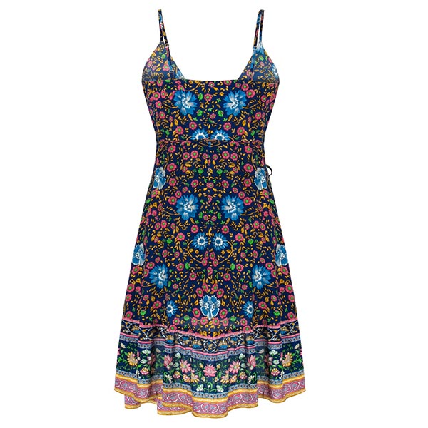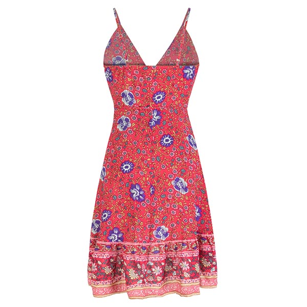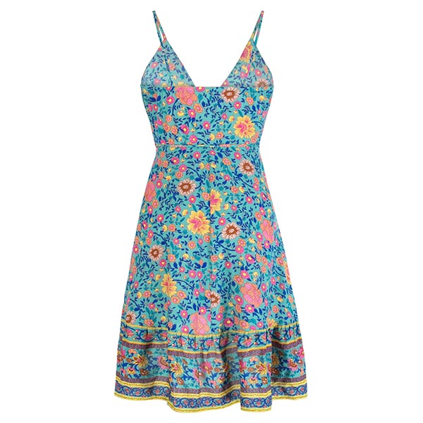 Bohemian Style Backless V-neck Irregular Hem Printed Sling Dress