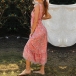 When walking on the beach with this beautiful and dreamy dress,you can easily be a pleasant sight! This maxi dress features vibrant floral print details,the backless and deep v-neck design can better highlight your sexy and feminine side. On these sunny days,adding a sweet straw hat would be more perfect!