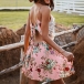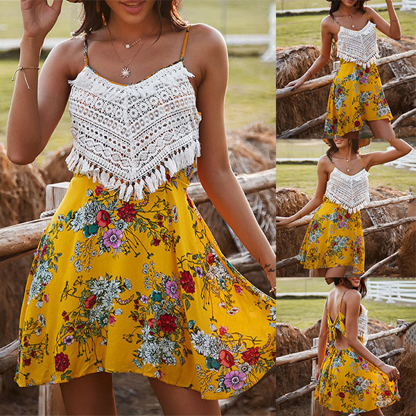 For your beach days and tropical getaways,this bohemian style dress can easily strike your mind. Sling style,with backless,v-neck and tassel spliced details,which make this piece look so alluring and distinctive. And the vibrant floral print details will make it more matching with the beach occasion. On these sunny days,we suggest you adding a sweet straw hat for a more perfect look.