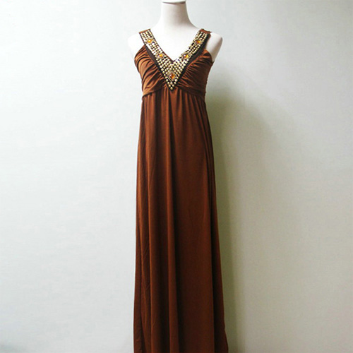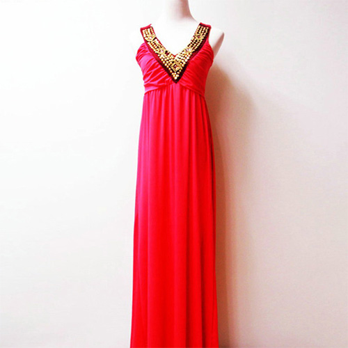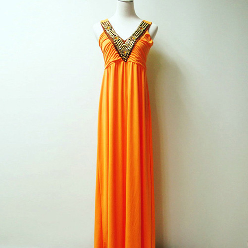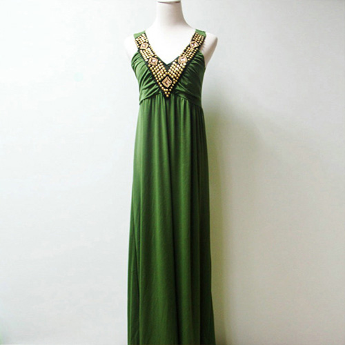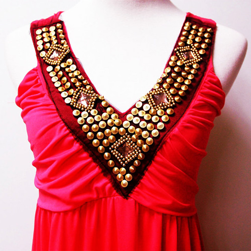 a deep v-neck,and its neckline decorated with beaded,sexy and charming. Walking