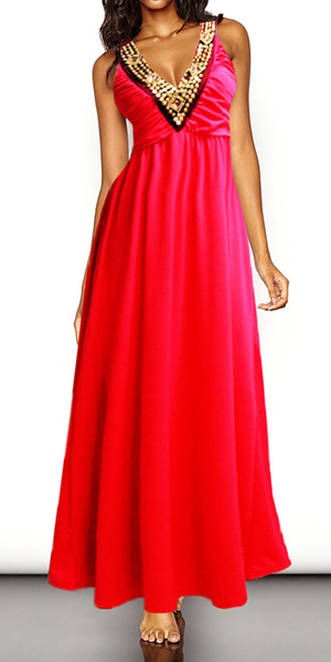 This bohemian style maxi dress is your best choice for your seaside trip. It features