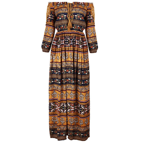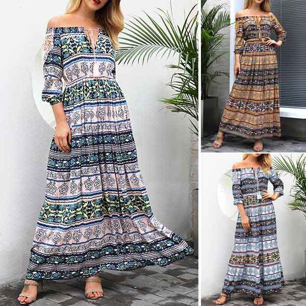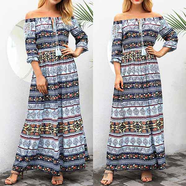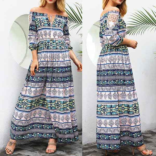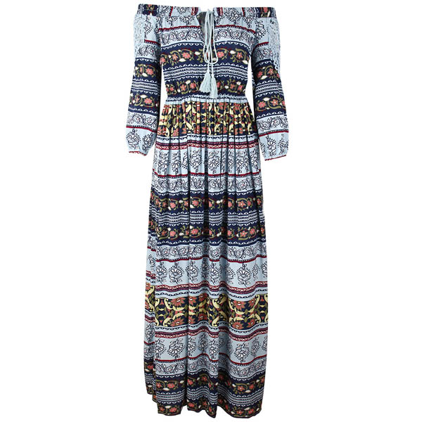 Boasts chic and eye-catching printed pattern,finished with long sleeve,boat neck and high waist design,