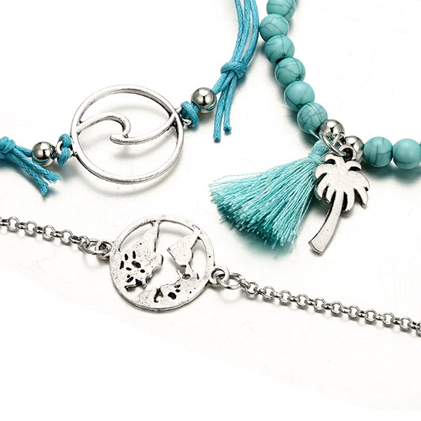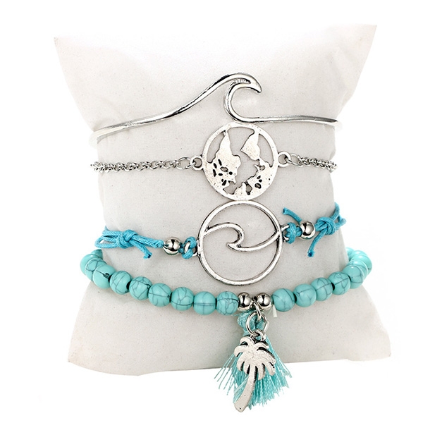 When you wanna embellish your bared arms,you can consider about this bracelet set. It consists of 4